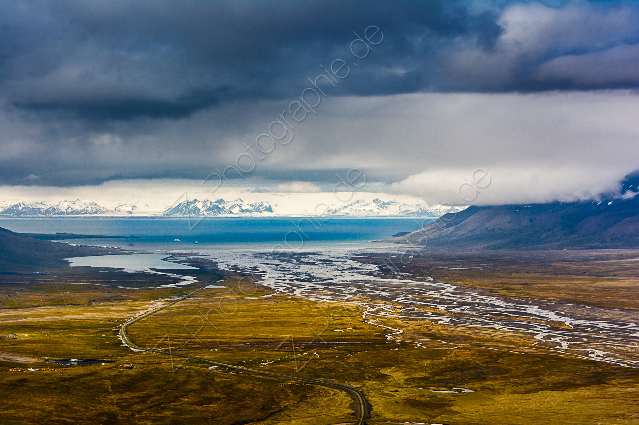View of Adventfjorden and Adventdalen, Svalbard, Norway